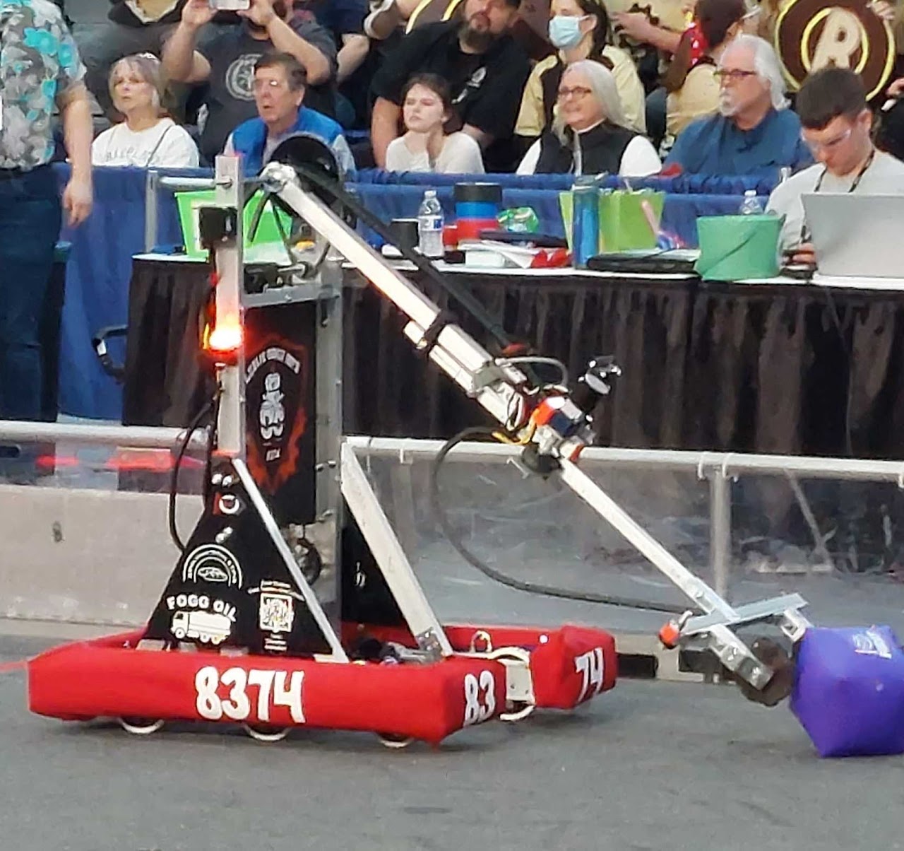 This is our final robot design(as of 3/9/23). We had to change the chassis to create enough ground clearance to get on the pad. Then, we attached our pneumatic grabber and our electronics. We ended up placing in the top 15 in our first competition, and in our 2nd competition, we finished in the top 10 and became alliance captains. I am really proud of what we accomplished in 2 years!