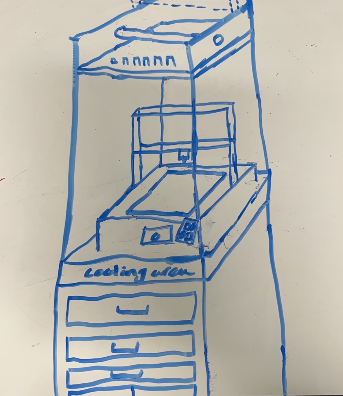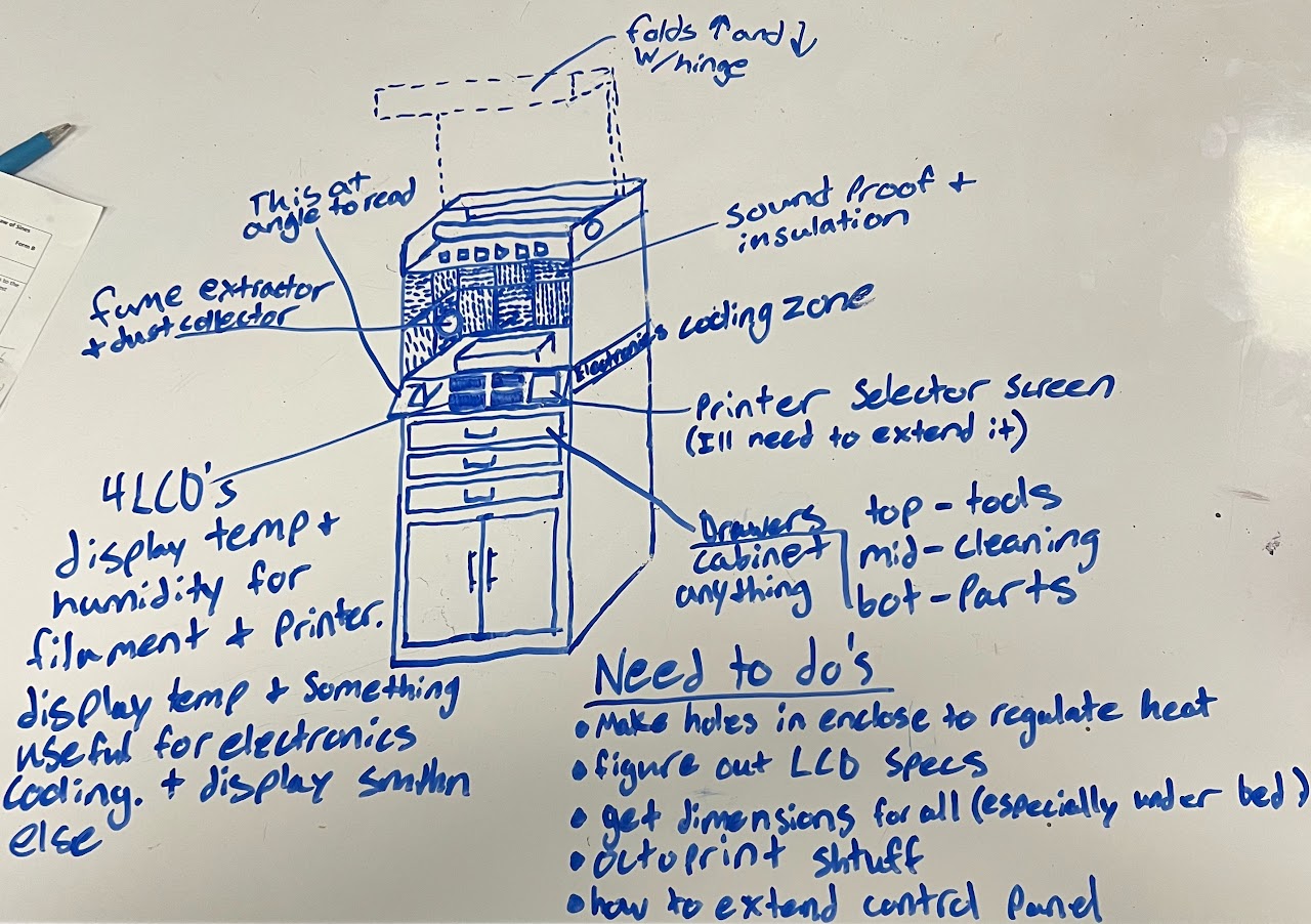 This was a very quick “napkin” sketch I created on a whimsical chance trying to think of a project for my class. I wanted to make an enclosure to improve my quality of print.