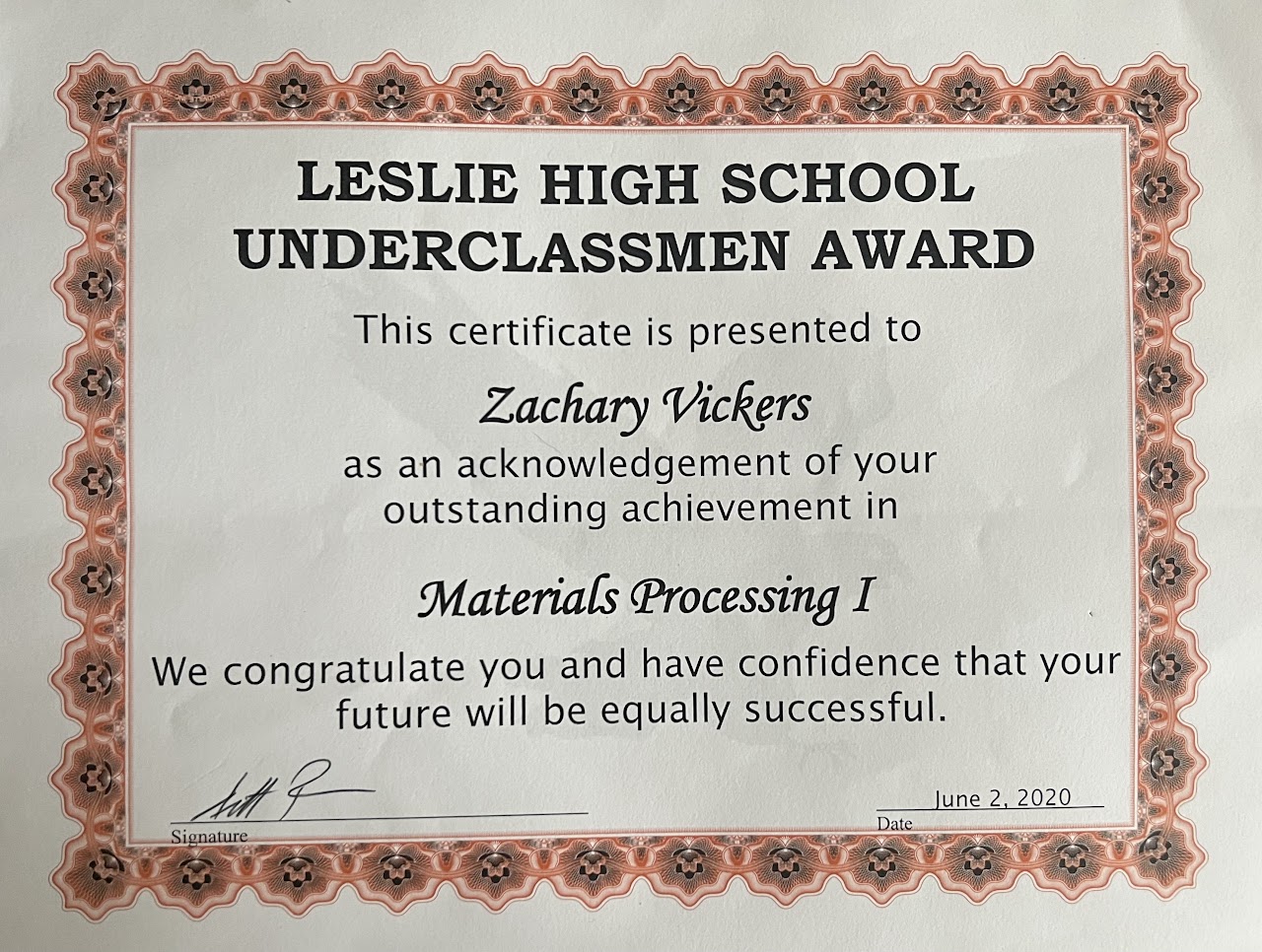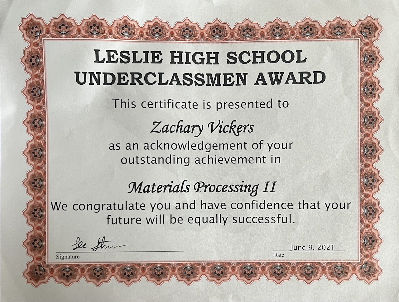 Certificates and Awards